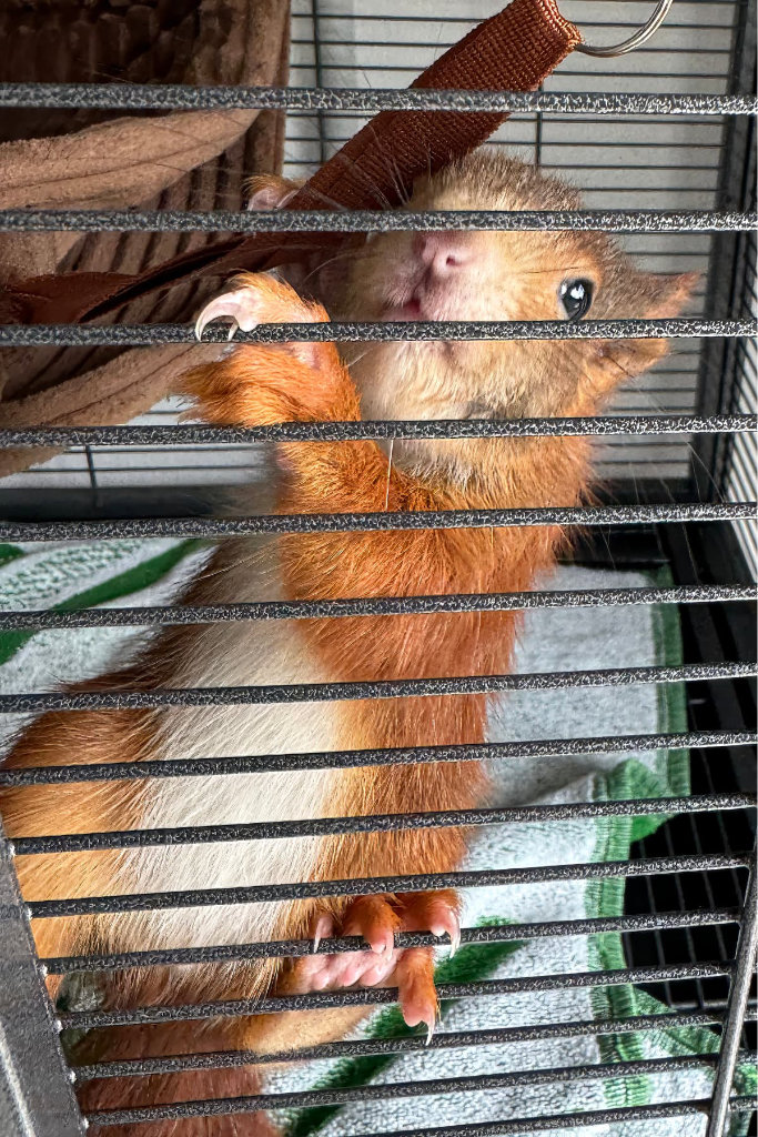 An einem warmen Frühlingstag wurde ein winziges Fellbündel zu uns gebracht: Hazel. Ein Eichhörnchen-Baby, das aus dem Kobel gefallen war. Ihre Augen waren kaum geöffnet, das Fell noch dünn. Allein hätte sie draußen keine Chance gehabt.